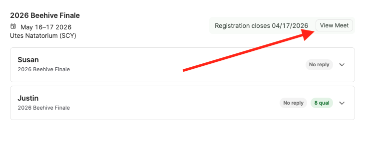 Then, open the meet you are ready to register for by selecting the "View Meet" button