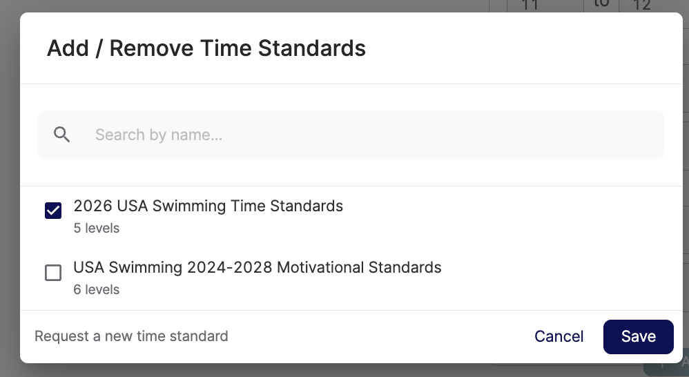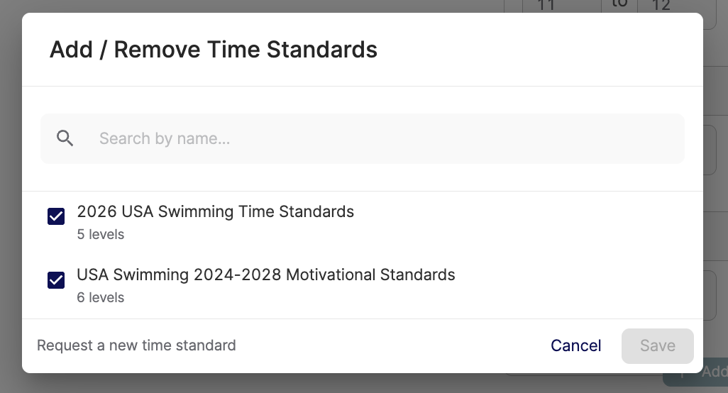 Click the Add Time Standards button to search for and select your time standards.