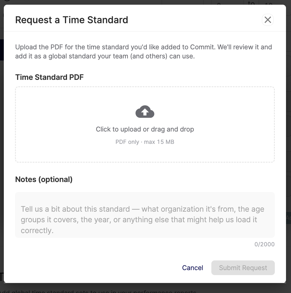 Then upload a PDF of the time standards.