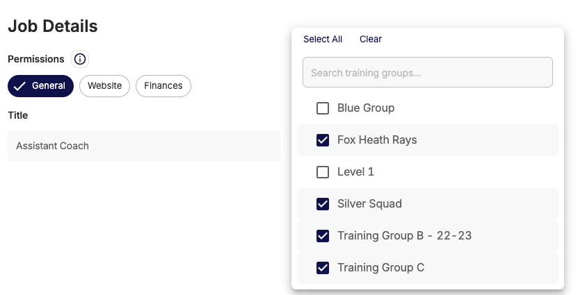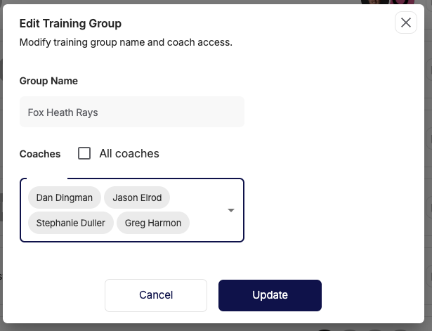 Note: By default, any new coaches will be added to all training groups mapped to the team