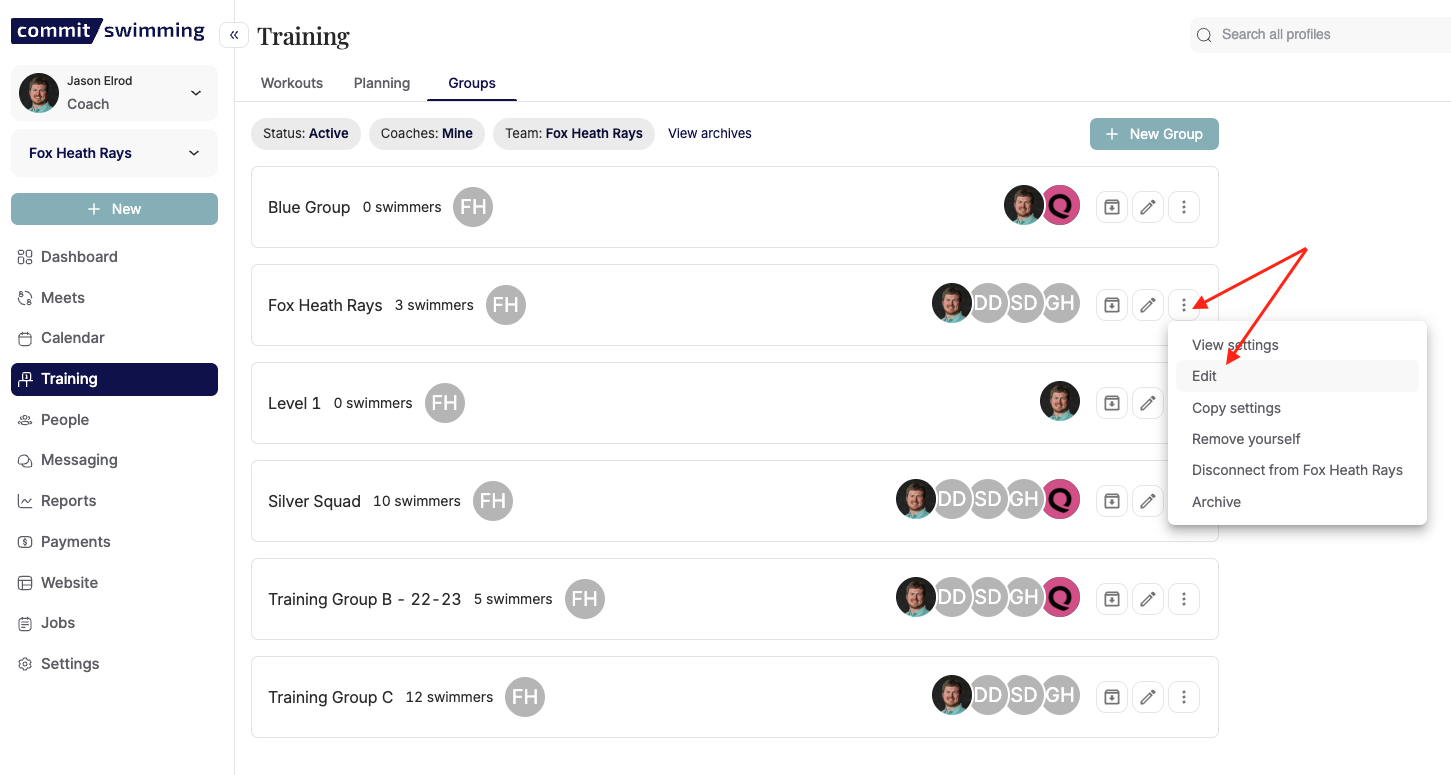 Or you can do this is under TRAINING > GROUPS and then click the EDIT button on the actions menu for each training group.