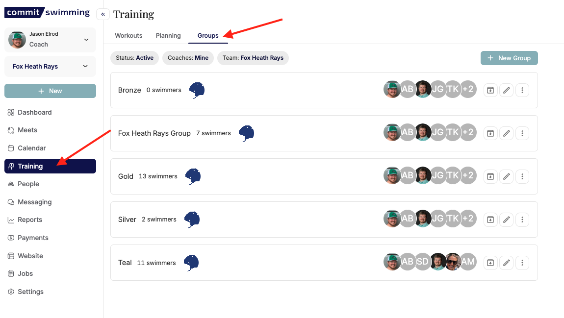 - Navigate to the TRAINING menu and then select the GROUPS tab