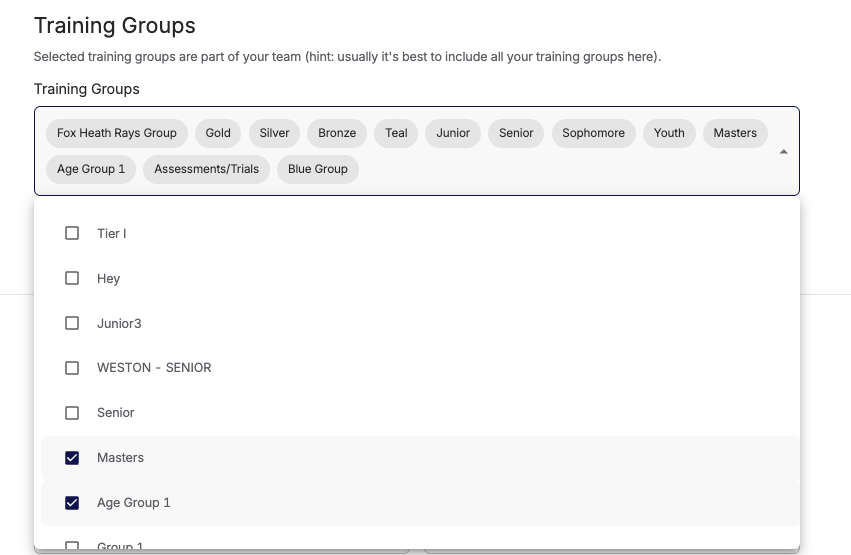- You can then assign sub-groups within the training group's settings (You can create as many as you need or as few)