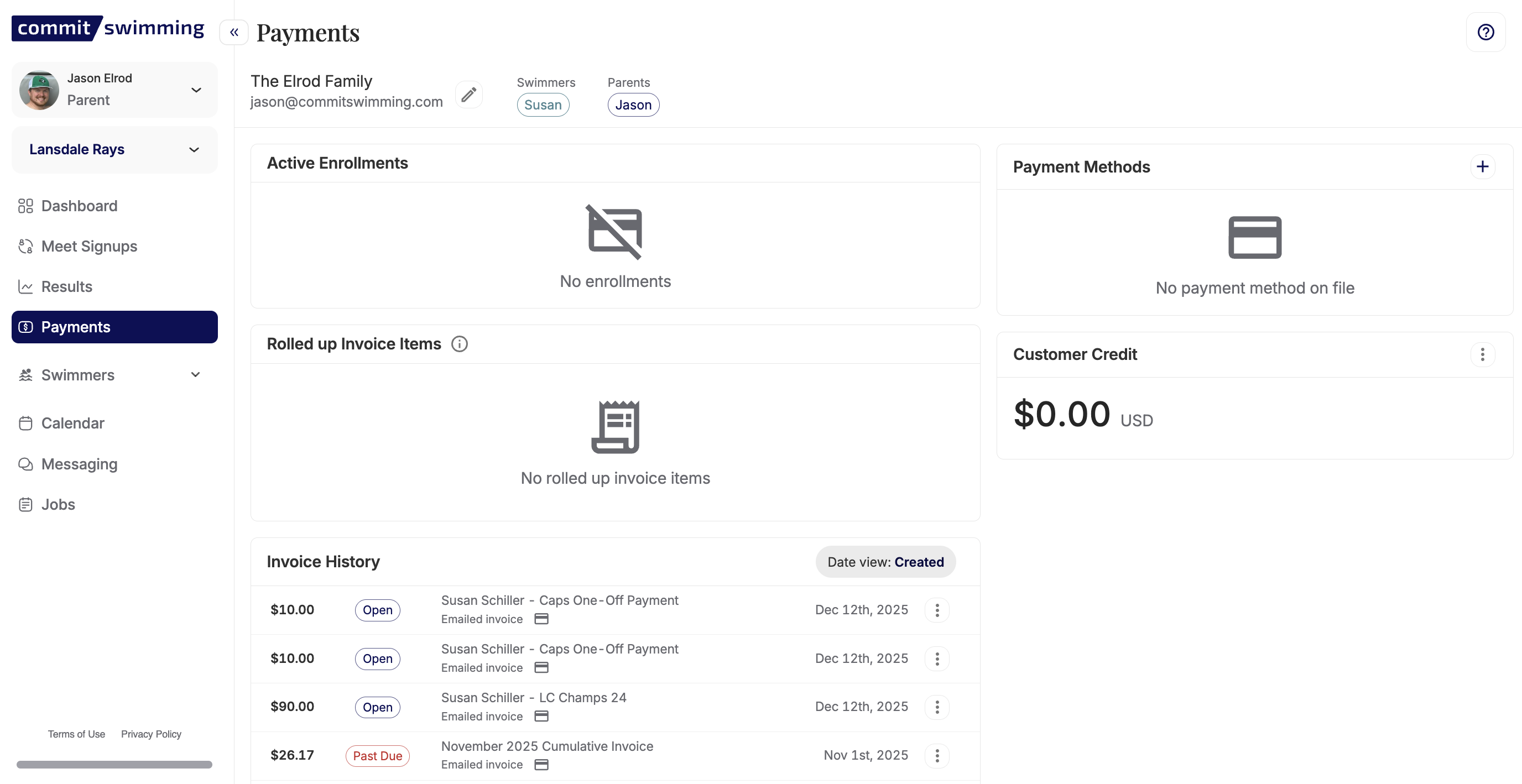 This will pull up your billing account, where you can see invoices, enrollments, and update billing info.