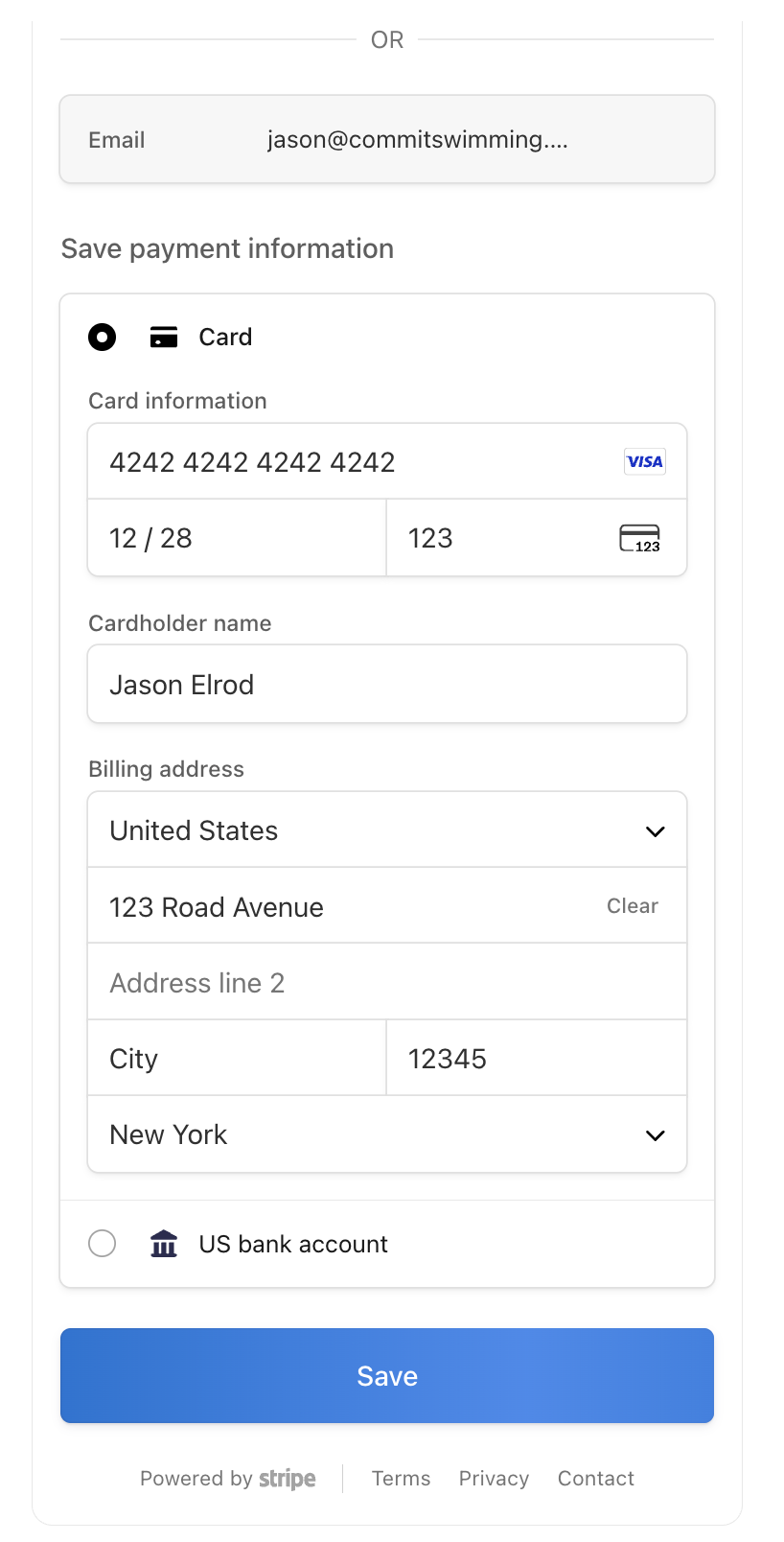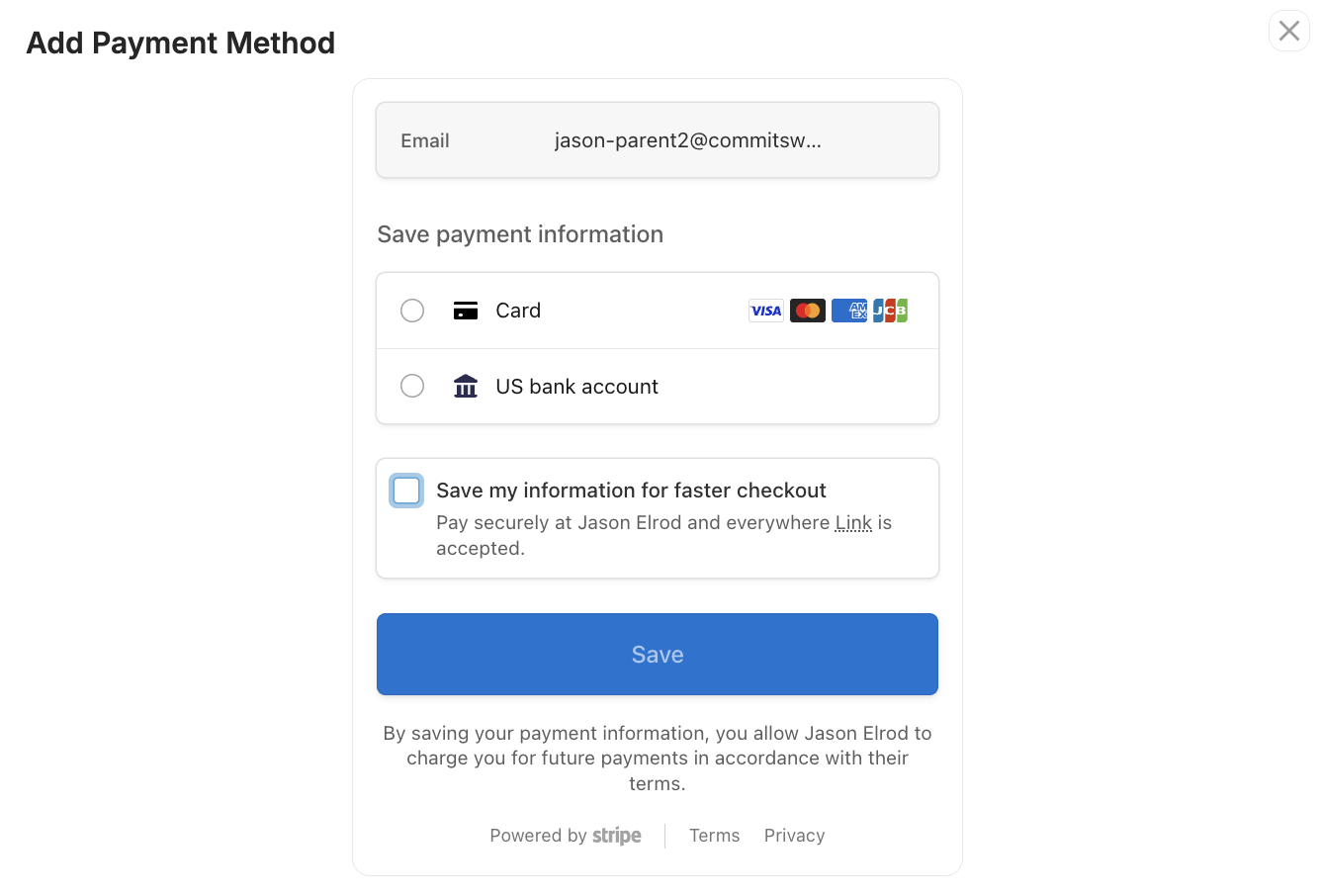 You can also select if you wish to save your information for future payments. (You will want to select this to save it your account properly)
