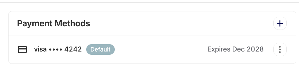 When you hit save, it will appear under your payment methods and can be used as your DEFAULT payment method.