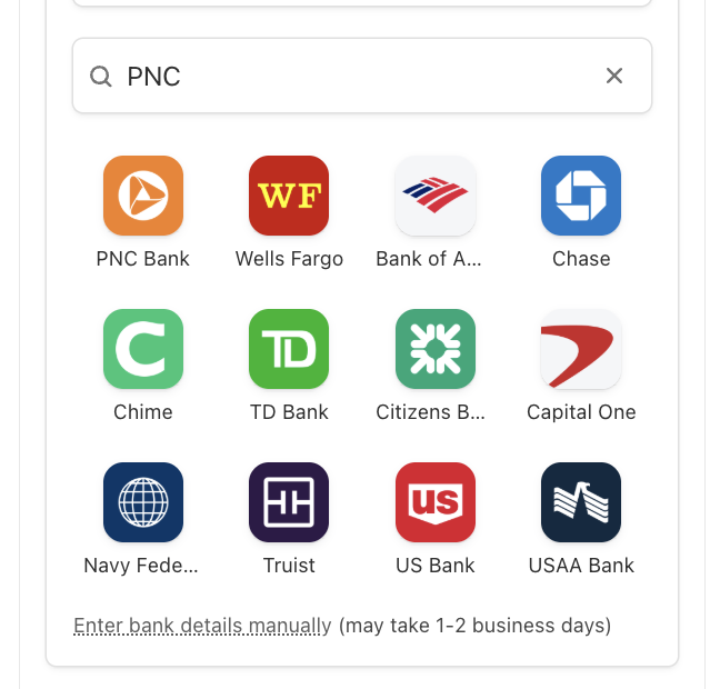Then you will select Bank Account (this will change regionally, but the steps are very identical).