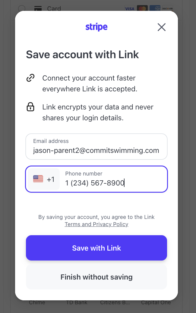 You may be prompted to save your data with LINK. We recommend not using this as it may cause issues with the proper processing fees being applied when being charged in Commit. You can learn more about LINK here: https://link.com/