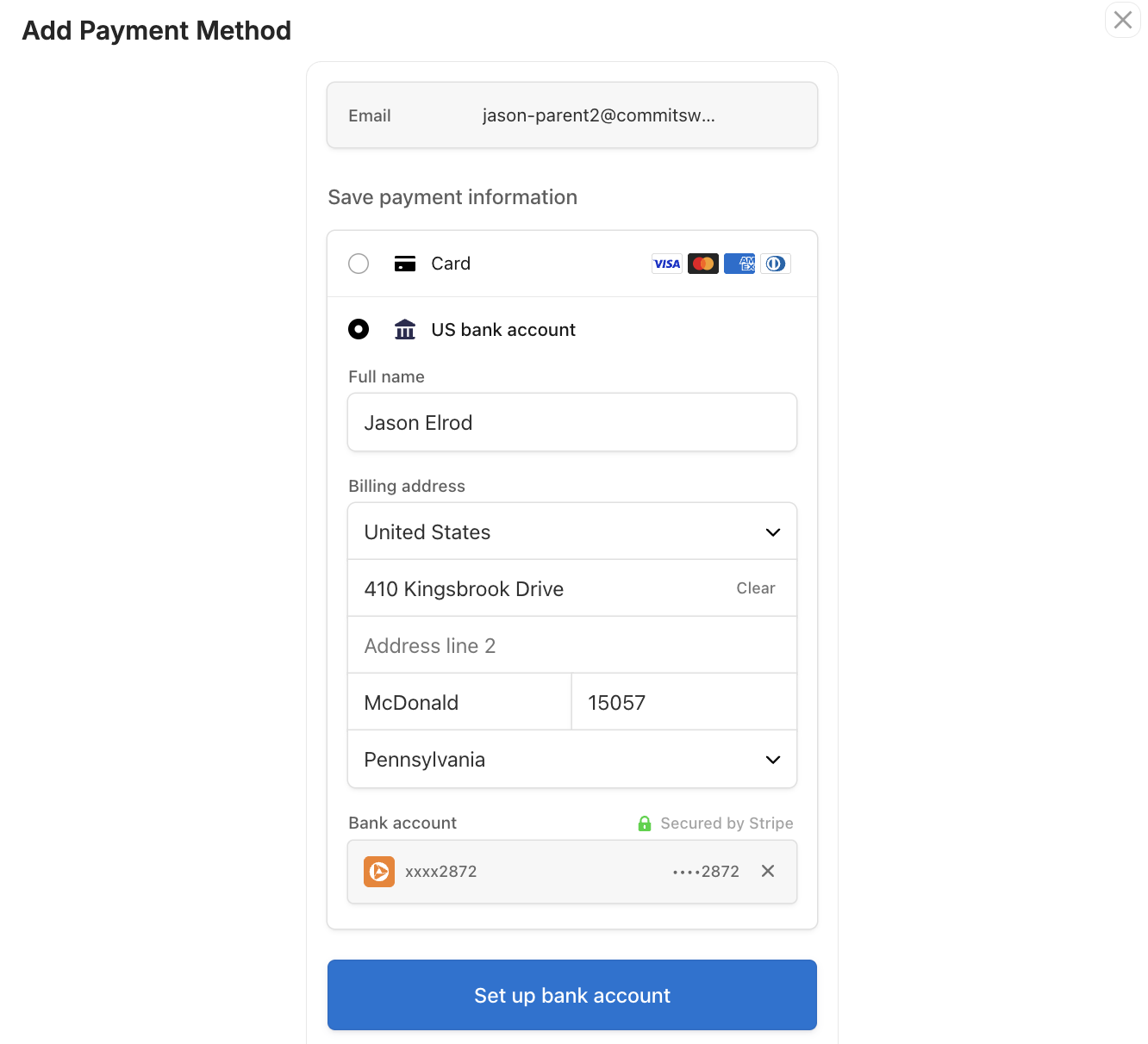 You will then see the screen to review your data - click SET UP BANK ACCOUNT to complete adding your bank account.