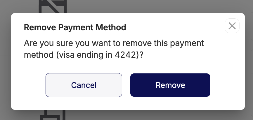 Once payment methods are added, you will always need to have one payment method on file (you can delete as many as you need, up to the last one) To remove them all, you must contact your club